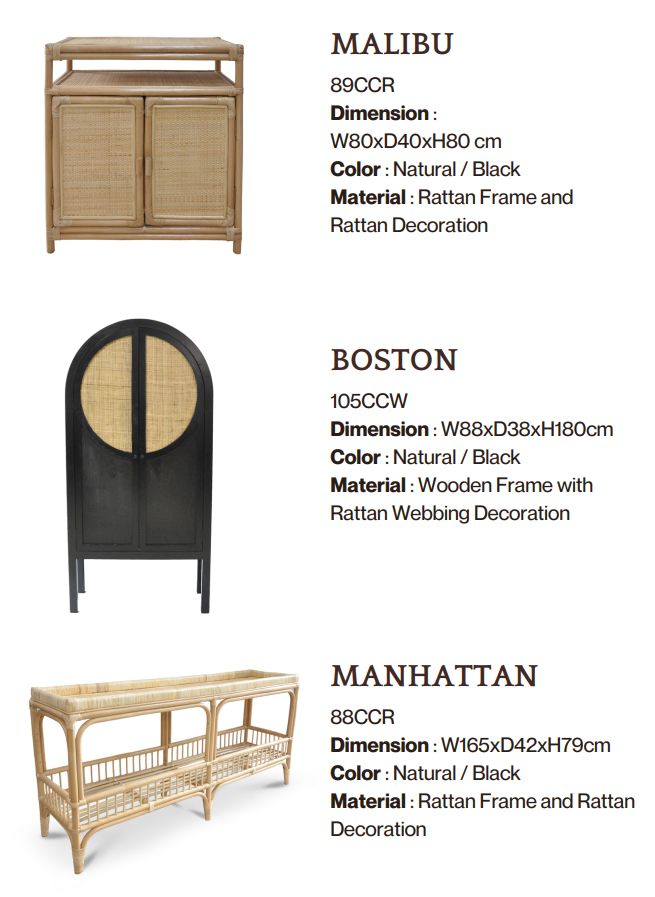 Bring home the beauty of Indonesia with our exquisite cabinets and wardrobes, handcrafted from natural rattan. Each piece blends tropical charm with functional design, offering lightweight durability, ample storage, and a touch of artisan elegance. Sustainably sourced and expertly woven by skilled Indonesian craftsmen, our rattan furniture is more than just storage — it’s a statement of style and sustainability. Perfect for any room, naturally timeless.