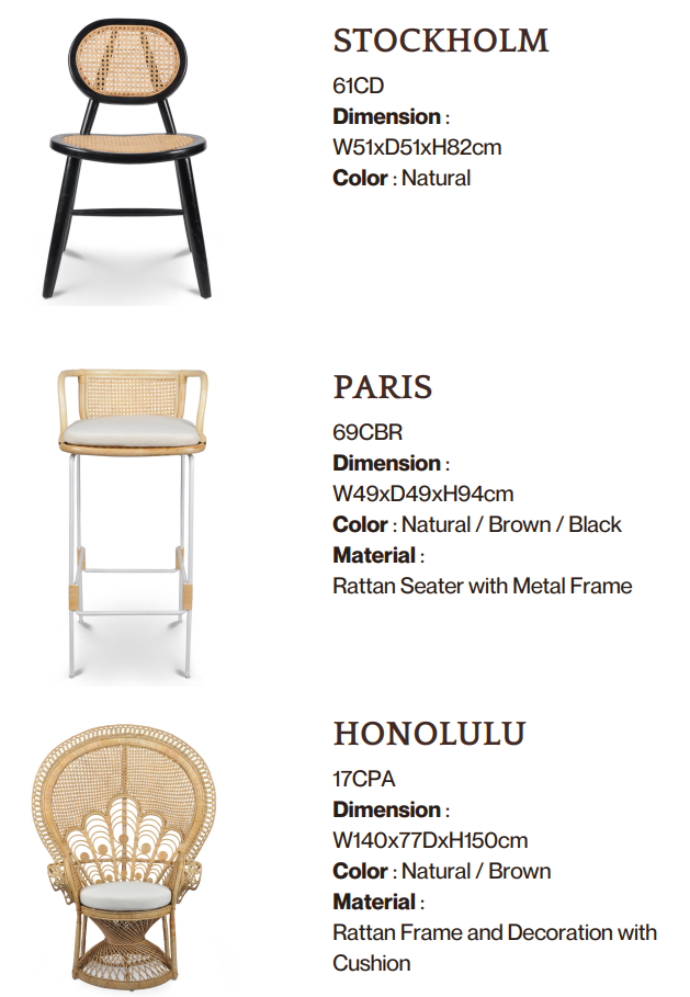 Experience the perfect blend of nature and elegance with our handcrafted seating made from premium natural rattan. Designed to bring warmth and character to any space, each piece showcases the organic beauty of rattan’s texture while offering exceptional comfort and durability. Whether enhancing a cozy corner, a sunlit patio, or a stylish living room, our rattan seating creates a relaxed yet sophisticated atmosphere. Lightweight yet sturdy, sustainably sourced, and artisan-made, this timeless furniture not only complements your décor but also supports eco-conscious living. Elevate your space with the charm and quality only natural rattan can offer.